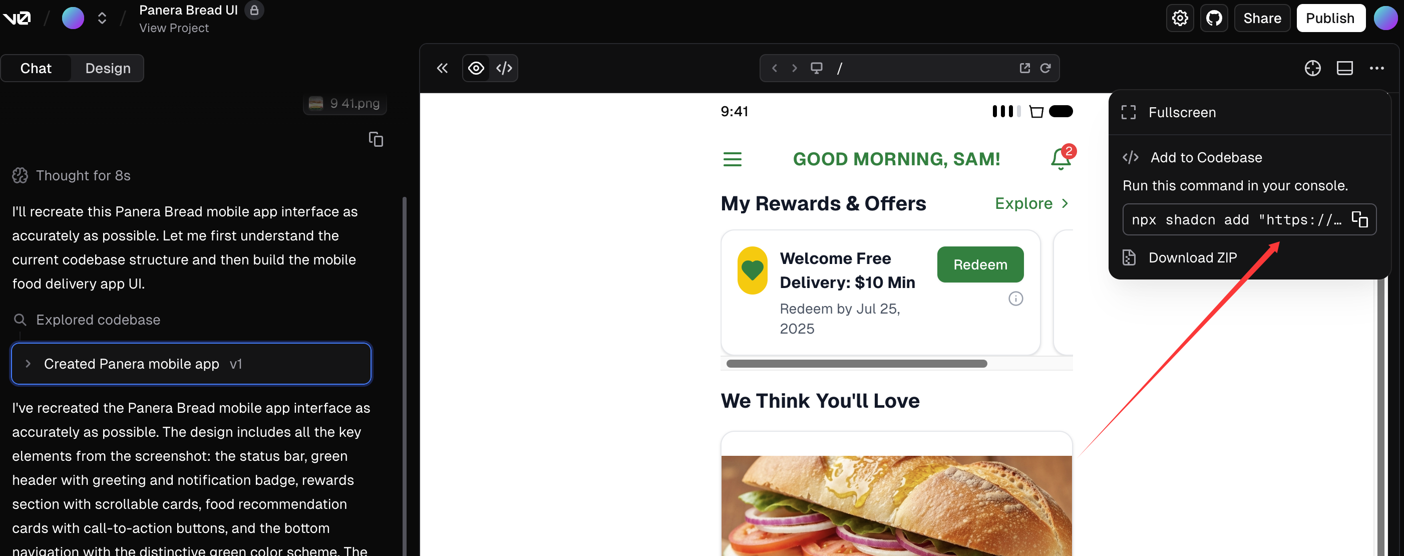 如果你更希望让AI全自动完成需求,并一键部署,可以试试类似v0等的平台