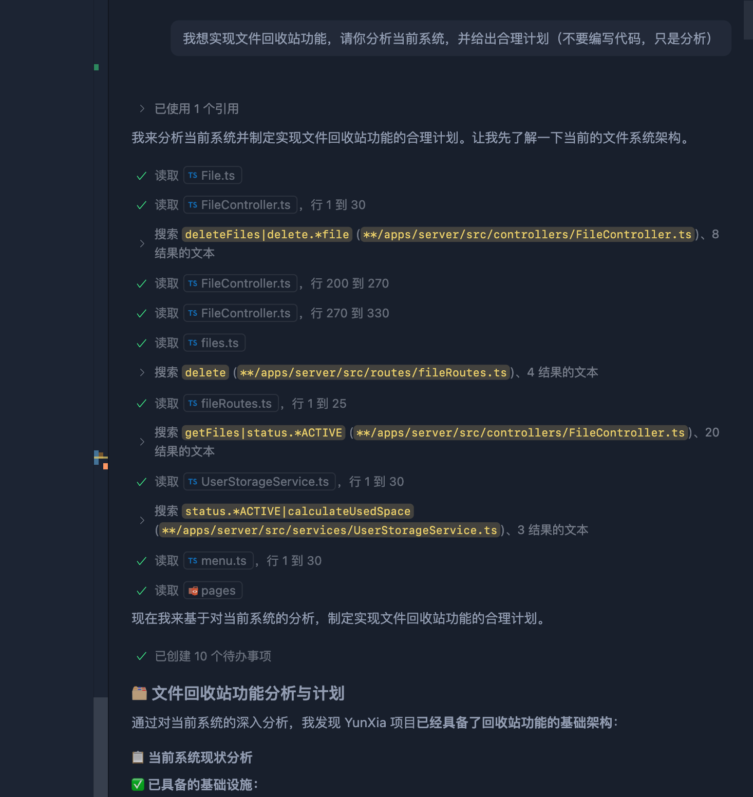 最近我使用AI完成了一个较为大型的全栈项目的开发。我使用VSCode Copilot + Claude 4模型,仅靠提示词、部分手动修改的错误和代码审查,在两天半的时间里,完成了一个代码量2w+的网盘系统,90%的代码都是由AI完成的!
